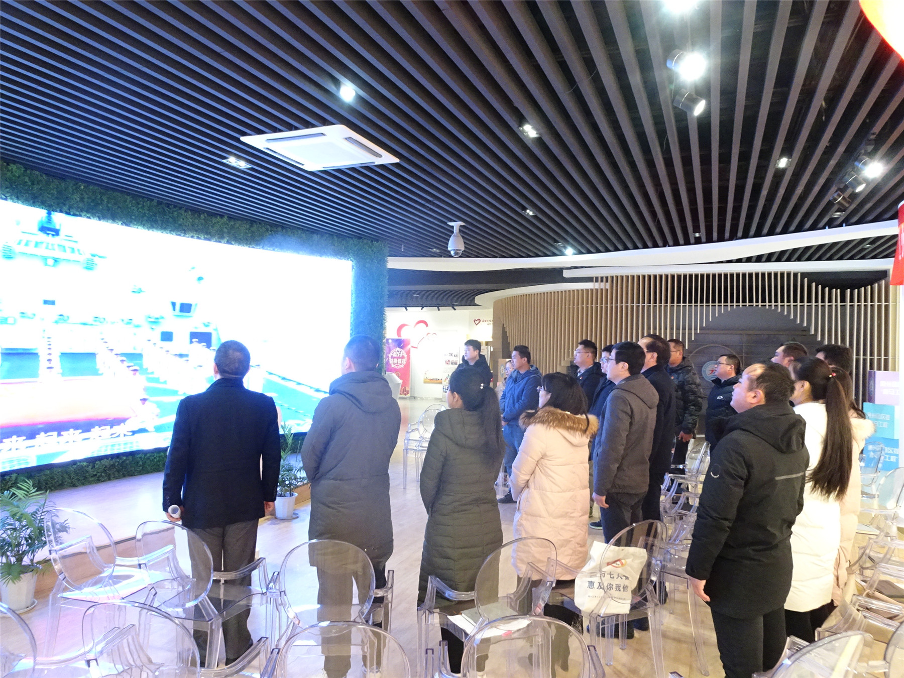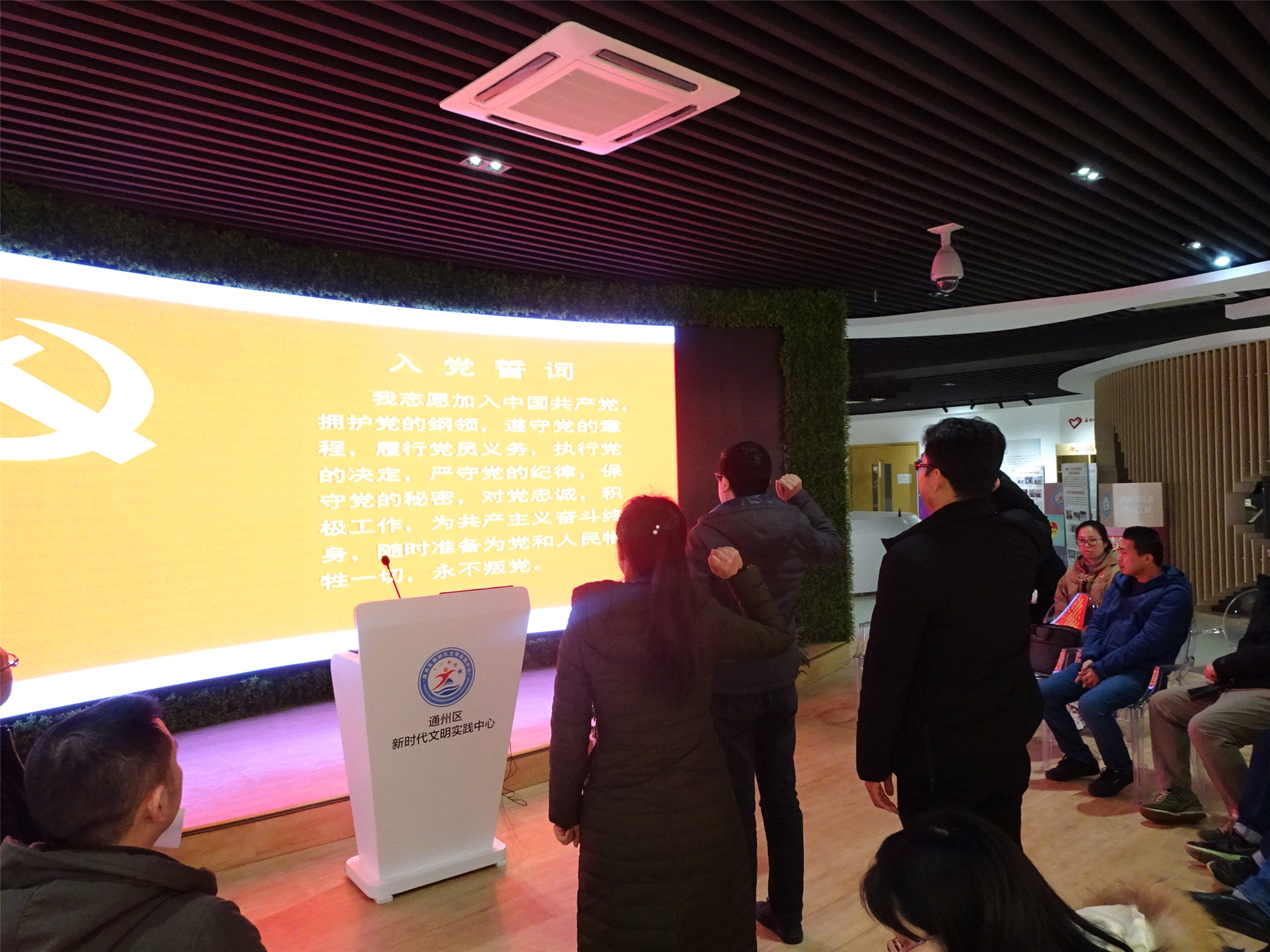 随后,大家在实践中心完成了奏唱国歌、齐颂部分党章、缴纳1月党费等规定动作。